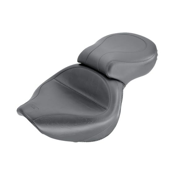 A plain touring seat with 15" wide front seat and 11,5" wide passenger seat. The Standard Touring platform features several design improvements over the stock seat. A deeply pocketed driver bucket sits you in the ideal cruising angle at a similar reach to the controls compared to stock. The driver's back is well supported by the nose of the passenger seat that extends forward to create a full high backrest.