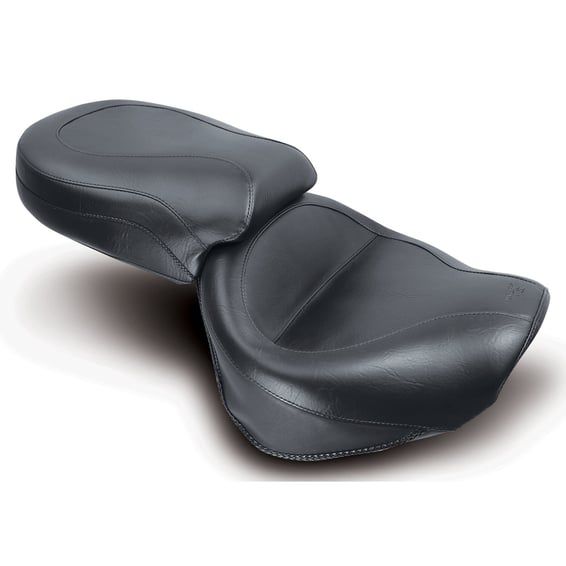 A plain touring seat with 17" wide passenger area and 13" wide passenger seat. The Standard Touring platform features several design improvements over the stock seat. A deeply pocketed driver bucket sits you in the ideal cruising angle at a similar reach to the controls compared to stock. The driver's back is well supported by the nose of the passenger seat that extends forward to create a full high backrest.