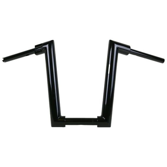 With approval. Gloss black powder coated Super Fat 2" (51mm) diameter handlebar. - Tall. 38cm high x 81cm wide x 26cm lower width x 13cm pullback - Riser clamp area 1-1/4" (32mm) diameter x 140mm wide - E-throttle - Okay for heated grips - Slotted for internal wiring - Wiring slot facing down Note: Check your local MCS dealer or the MCS sales department for exact type of approval and validity on bike model and years on the test report. Note: Original risers of some models are too wide and may not fit. 979860 Kodlin Big Block risers are advised for all H-D with 1-1/4" (32mm) diameter at the risers, excl. M8 Breakout models for which 599573 Breakout lower risers are advised. When stock risers are a (too) tight fit do not install.