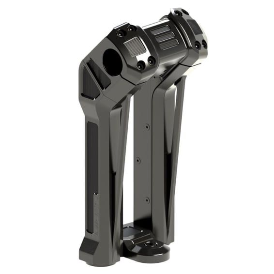 For models with dash mounted instruments. Top riser clamp is closed, so not suitable for installing a digital instrument. Black anodized finish. 3D CNC machined from high strength aluminum. Striking pullback Clubstyle design that will do any Clubstyle bike owner proud. With built-in 2" pullback. Risers come with a 1-1/4" (32mm) handlebar clamping area. This can be reduced to 1-1/8 or 1" with the optional available Rick's riser reducer kits. - Integrated cable channels, so no visible cables between the risers - Includes cover for cable channels - Works with OEM steering lock - Handlebar clamp 'Torque Bar' for optimal strength and flex control - Cable cover for triple clamp - Riser mounting screws included - With 'rigid mount' kit 4 x stainless steel bushing for no movement in the bars & ultimate control Note: When running other than 1-1/4" (32mm) handlebars at the clamping area, see Rick's riser reducer kits 709603 for 1" (25.4mm) or 709604 1-1/8" (approx. 28mm) handlebar diameter. Note: See Rick's optional 709601 'Offset Riser Plate' when you think your handlebar is too far forward for your arm length / preference. This is a riser relocation plate used to bring the handlebars 40mm closer to the rider for better control and long distance comfort. Note: With risers come with approval. Check your local MCS dealer or the MCS sales department for exact type of approval and validity on bike model and years on the test report.