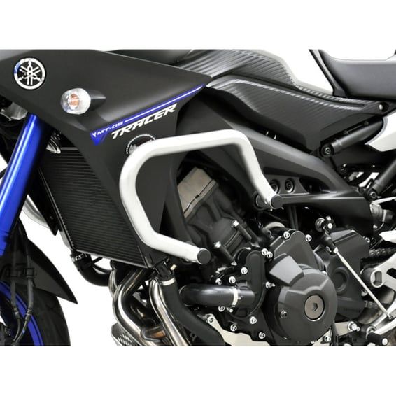The silver powder coated crash bar offers a perfect fit when mounting on the OEM mounting holes
