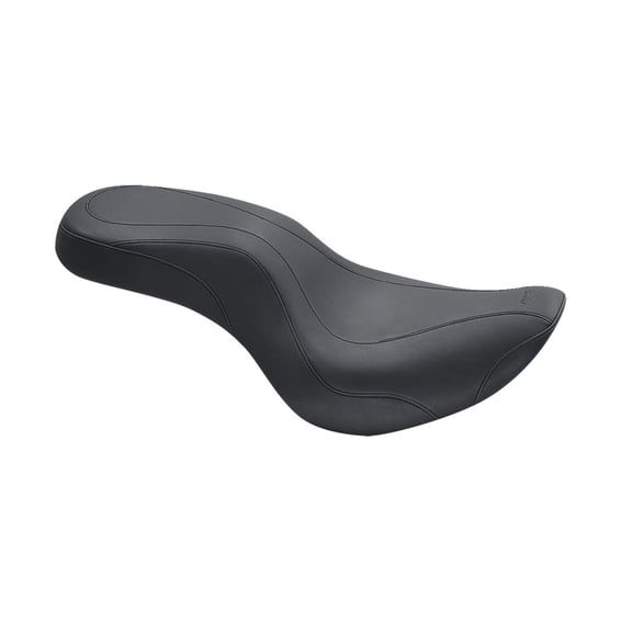 A low and lean seat, front width 12" and rear width 8", with detailed stitch work that feels good for both the rider and the passenger
