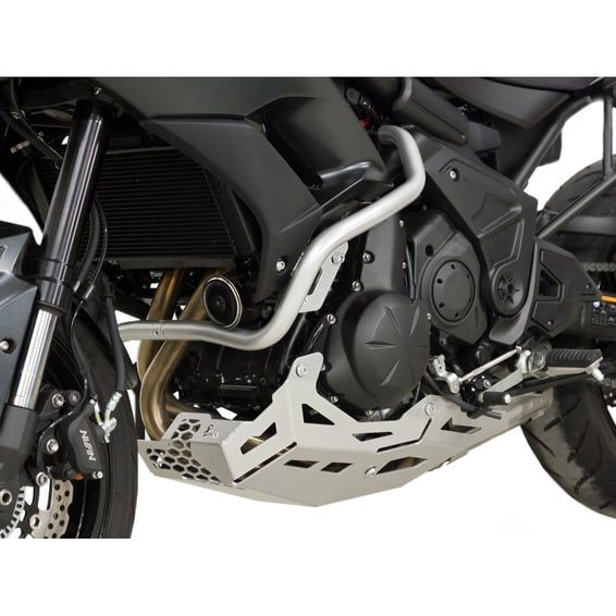 Protects the engine from stone chips. Made from silver powdercoated aluminum and easy installation because it can be mounted to the original mounting points. Compatible with the original center stand.