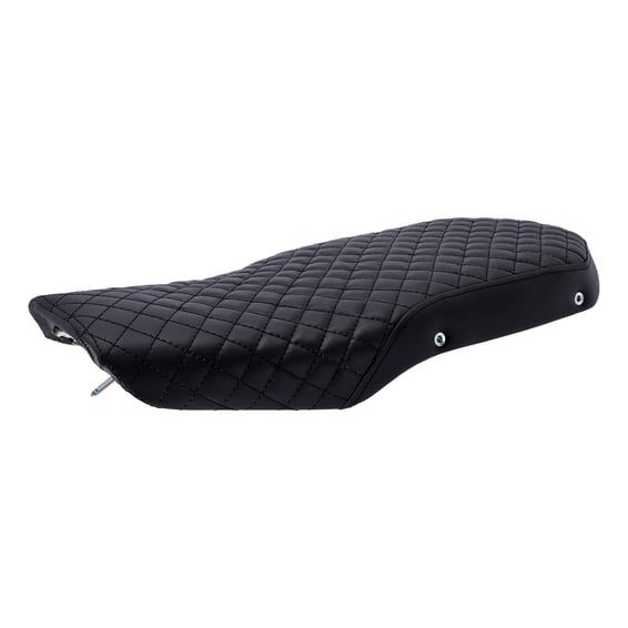 Great solution for either a Café racer or Scrambler. Note that this is not a bolt-on seat. It is required to cut the sub frame at the rear end and weld a new base plate, which is included with the installation hardware. There is also a plastic cover that covers the bottom half of the seat enabling you to ‘'hide’' the various electric parts. The seat base is made of 3mm thick matte black unpainted ABS plastic and comes with 40mm thick foam, with a density of 800kg/cubic meter, that is covered with a water repellent membrane below the PVC upholstery. It’s not 100% waterproof due to the seams on the upper surface, but it has a membrane that does not allow water to reach the body of the foam. All required parts on the seat are pre-installed. Comes complete with installation hardware and instructions.