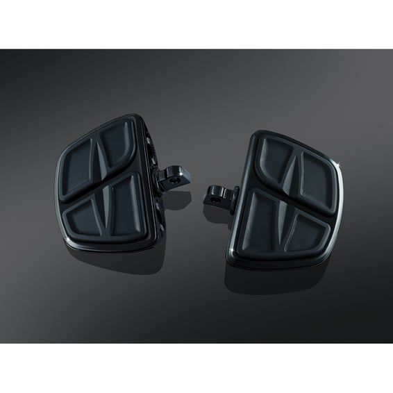 Incl. traditional H-D male mount adapters. Switch from pegs to floorboards in seconds without full-size floorboard bulk. Approx. dimensions 5-1/2" long x 4" wide. Mounts with splined adapters so boards can be rotated and positioned forward, back at almost any position. Can be used as Rider Cruise pegs.