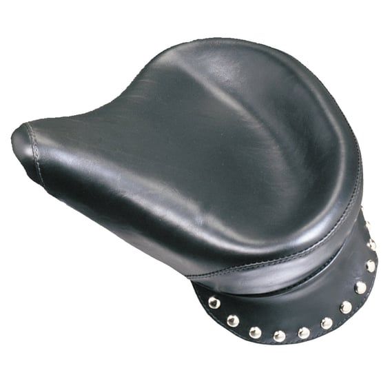 Marathon foam. Smooth, with skirt and studded. Used with universal solo seat springs and mount brackets. Approx. dimensions: 15-1/2" (39.4cm) long x 14-1/4" (36.2cm) wide.