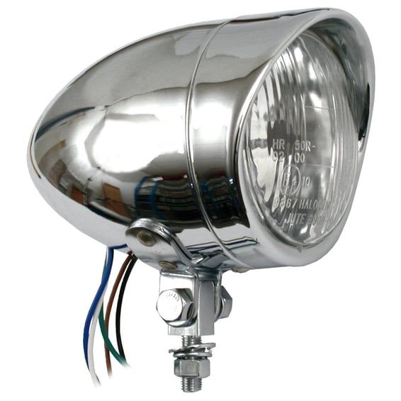 Long bullet 4" H4 headlamp. with visor. Chrome