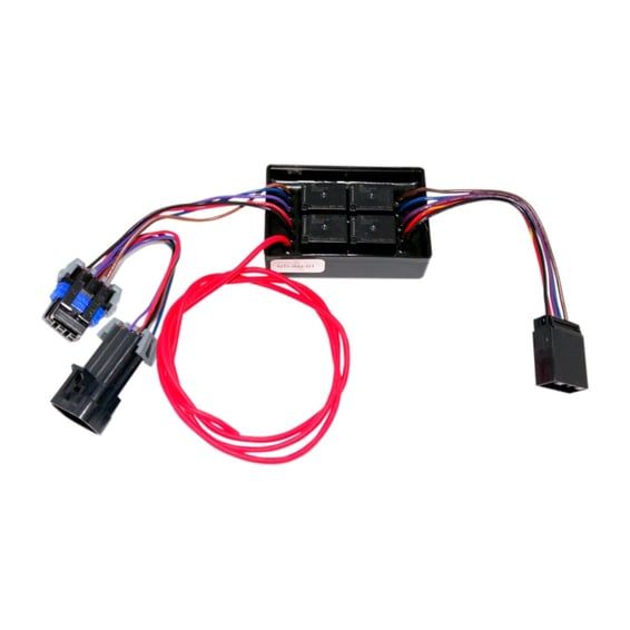 Wiring harness for connecting a trailer to the bike. These trailer isolator wiring harnesses isolates the electronics for the trailer from the motorcycle. The trailer isolator wiring comes with relays, which are triggered by the bike. But actual current is drawn directly from the battery so there is no current draw to interfere with the bike´s electrical system. The 5-wire trailer output comes with left, right, brake, turn & ground wires.