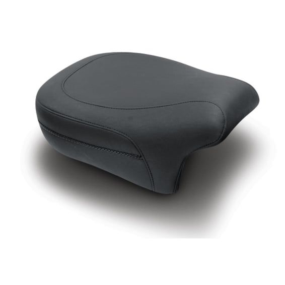 Black. 13.5" wide. Standard style stitch. Will not fit solo seats with a rider backrest. Will not fit with handrail. Note 1: Mustang solo seats & passenger seats cannot be mixed with OEM solo or passenger seats.