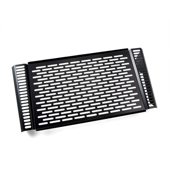 This radiator cover protects the expensive and sensitive radiator from road rocks. It has been made from black powdercoated stainless steel. Easy installation as mounted to the OEM mouting holes.