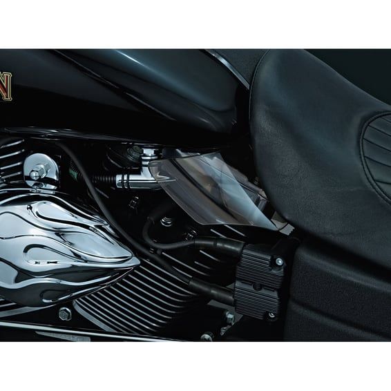 Picture a blazing hot day. Standing in a traffic jam or waiting for that traffic light that seems to stay red all day. The heat radiating from the engine is getting close to unbearable, this is not the way you pictured your riding day. Your solution is a pair of Kuryakyn Saddle Heat shields. These heat shields are actually heat deflectors, made from tough polycarbonate with a reflective smoke finish. They are positioned on the frame to dissipate and re-direct heat away from you and your legs. - Polycarbonate - Reflective smoke finish - Keep cooler on hot days - Frame mounted - Installs behind fuel tank - Used to re-direct heat away from you and your legs