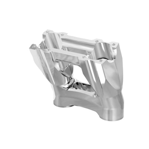 Raw machined uncoated finish. With 1" (25.4mm) diameter handlebar clamp area. Sold without top clamp, the top clamp (top plate) is sold separately depending on application. This 'Kickback style' moves the handlebar 1.5" (38mm) towards the rider. These isolated risers are designed to be solid-mounted to the top triple tree and are installed with the supplied billet bushings. This creates a much more rigid bar setup, allowing for improved control and far greater use of your bike's suspension and braking capabilities. As for vibration dampening, the rubber bushings are relocated just below the handlebar. There they are placed inside the riser mid-section. The proprietary use of these rubber isolators drastically reduces the amount of unwanted movement at the bushings. This creates a much more solid bar feel, giving you greater confidence in your bike's handling. You'll notice the difference of a hard-mounted riser legs and relocated rubber isolators right away. - Far less vibration than rigid mounted risers and a much better bar feel - Bottom clamp has an opening to accommodate hidden wiring - Top clamp ((top Plate) must be purchased separately depending on your application - 3.5" center to center for standard OEM H-D fitment - Bushing life is increased, maintenance lowered - Wiring slot in the center of the riser body allows for easy installation and clean wiring. Note: Sold without top clamp, the top clamp (top plate) is sold separately depending on application. Note: Kraus Isolated Risers are designed and engineered for universal fitment. Some modification may be required depending upon application. This product is NOT compatible with models that include integrated bar clamps on the triple tree top clamp. Note: Kraus Isolated Risers are a modular construction. You can run them without legs or swap out the risers legs for optional available lengths should you decide to run a shorter/taller rise down the line. See the 'optional Isolated Riser legs' for 4 available lengths between 3.5" (89mm) to 9.5" (241mm) tall.